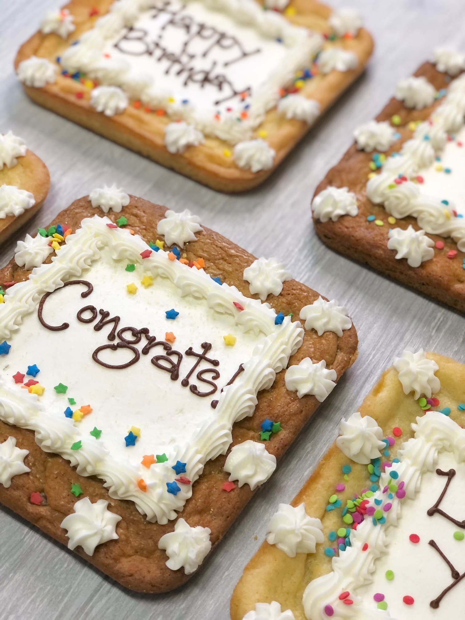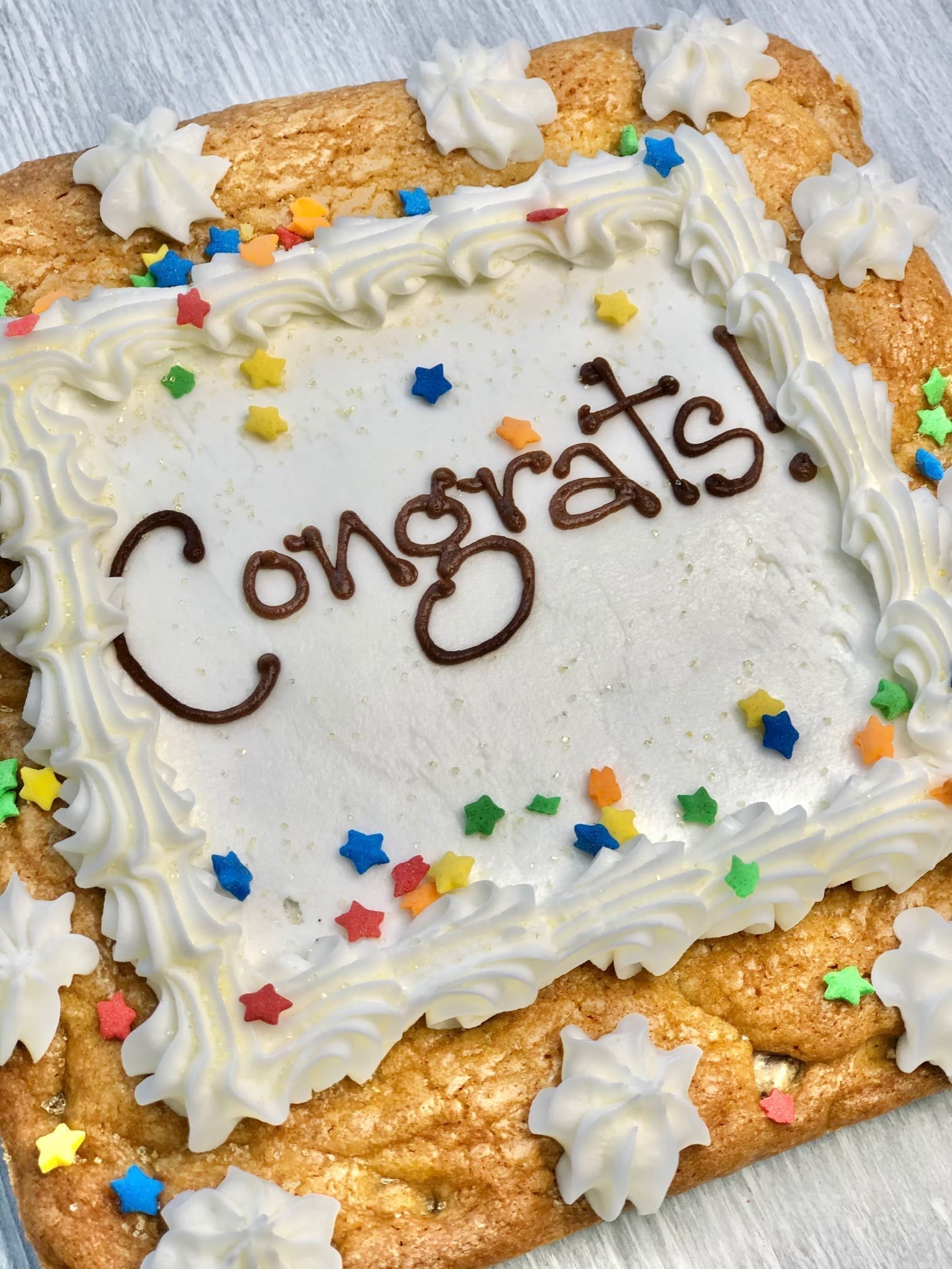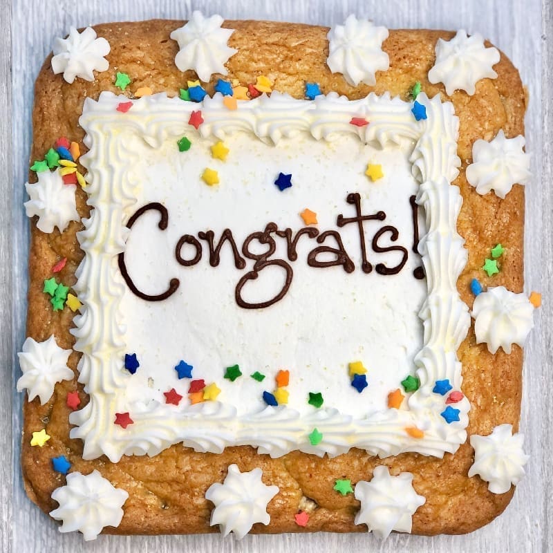 No matter the achievement, our celebratory 8×8″ made from scratch CookieText™ is the perfect pat on the back!