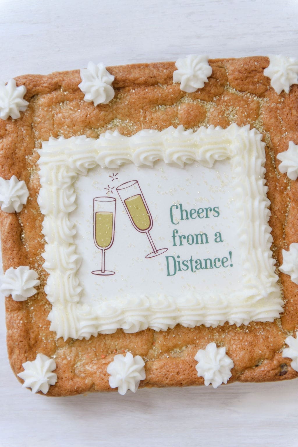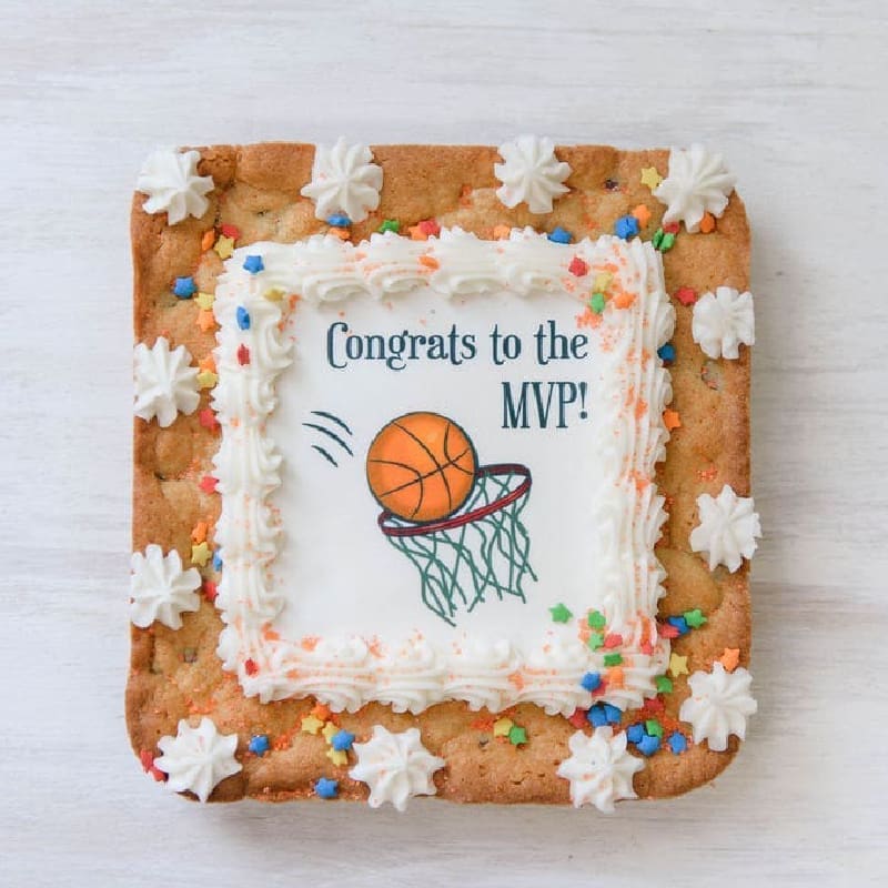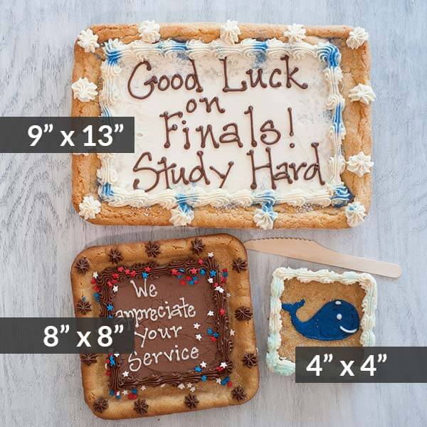 A CookiePic® is a cookie cake that includes your selected image and text. The image is printed on edible paper with edible ink using your provided image.