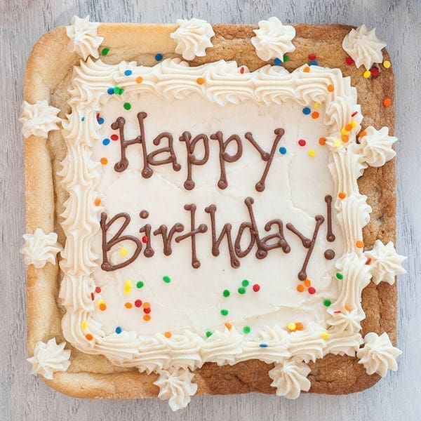 My college freshman’s cookie cake arrived promptly on the morning of his birthday, and he liked it so much I even got a shout out on Snap Chat. Thanks, Cookie Text!